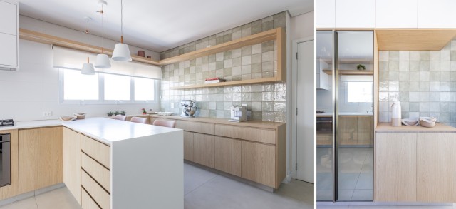 O ponto de partida deste projeto era jovialidade e leveza, de acordo com Marianna Teixeira e Carolina Castilho, da Freijó Arquitetura. Para isso, o uso dos azulejos com pequenos traços de cor garantiu um apartamento com personalidade | Foto: Mariana Camargo |