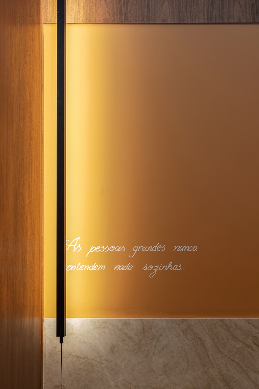 Para a arquiteta, entre tantas rupturas que o ser humano realiza, mesmo sem perceber, está a relação com a natureza. Tal qual um ambiente de encontro, entre texturas, simbologias sutis demonstradas por meio da paleta de cores, materiais e formas, além da iluminação acolhedora, o visitante é levado a repensar sobre seu vínculo com o mundo e com os outros.