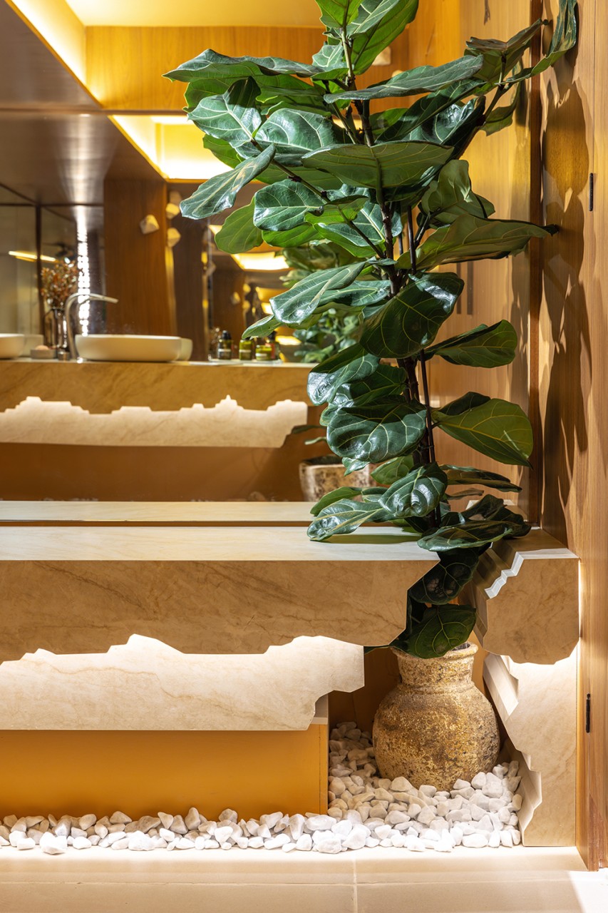Com sua especialização em neuroarquitetura e paixão pela biofilia, a autora do Banheiro Raiz, também formada em design de interiores, mergulha na composição do espaço por meio de elementos e significados que levarão os visitantes à reflexão