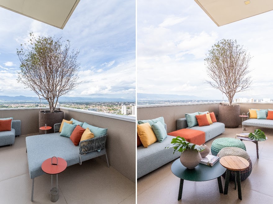 Na varanda dessa cobertura realizada pela arquiteta Patricia Penna, os sofás, incluindo o modelo chaise, são perfeitos para aproveitar o contato com o lado externo. Seja em qual hora for, a paisagem completa a experiência | FOTOS: Leandro Moraes