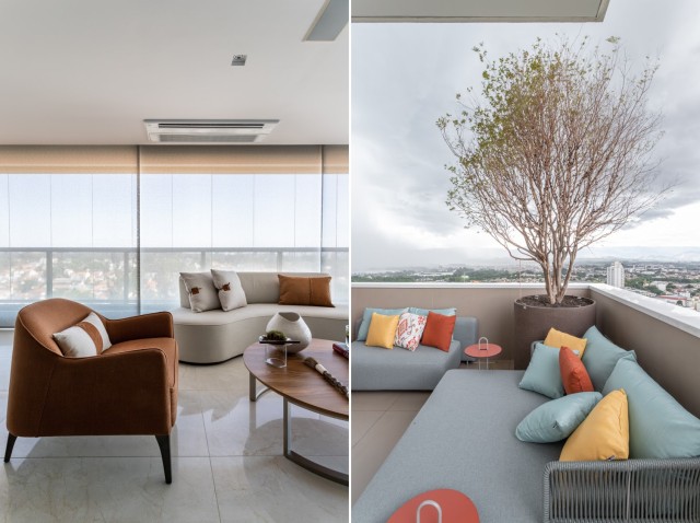 Uma das referências que guiam o conforto são os móveis que integram o layout dos ambientes. Por isso, sofás, poltronas, bancos, pufes, chaises, cadeiras e camas fazem toda diferença na percepção do conforto. "Tanto para os moradores, como também para os convidados, todos esses itens congregam com esse objetivo", entrega a profissional. Ainda de acordo com ela, a essência convidativa é coordenada com outros atributos como material, estilo, posicionamento no layout e funcionalidade.