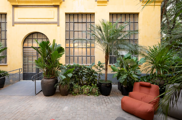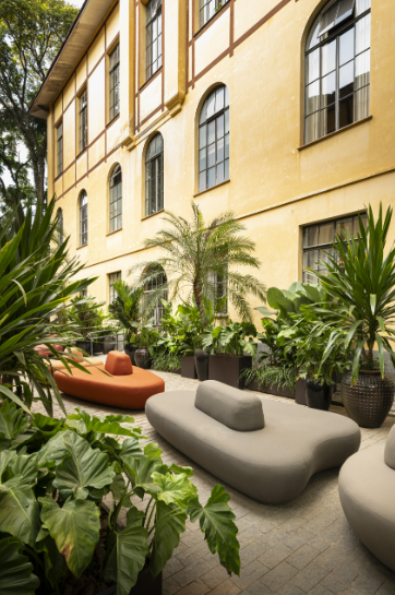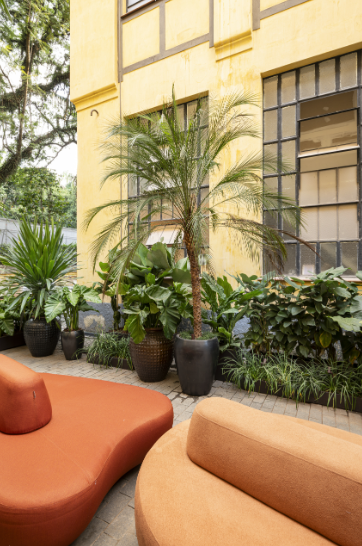 Os vasos e floreiras ladeiam todo o perímetro do espaço entre os dois prédios do Museu Geológico do Parque Água, onde acontece a mostra CASACOR São Paulo em 2025 | Foto: Renato Navarro |