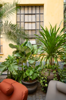 Seleção do Jardim da Alameda A estrela desse pequeno oásis urbano é o Cambucá, árvore brasileira nativa que produz seu fruto de sabor exótico e de sabor adocicado, com quatro exemplares de grande porte que se juntam a exemplares de Jabuticaba Sabará, a mais tradicional das jabuticabeiras, aclamada por seu doce 'ouro negro'. Ao redor delas, uma constelação de folhagens, em vasos de diferentes diâmetros e alturas, sustenta a harmonia do conjunto idealizada pela dupla: Filodendro Ondulado, Ciclanto, Maranta Charuto, Areca Triandra, Dracena Arbórea, Helicônia Bihai, Palmeira Fênix, Guaimbê e Liriope verde. Cada tipo, com sua forma e textura, traduz a intenção de preencher os vazios sem sufocar o espaço, entregando um volume exuberante. "Privilegiamos uma distribuição que ressaltou as formas onduladas, as folhas largas e as nuances do verde em equilíbrio", verbaliza Catê. O pensamento conduzido por Catê e João para a definição das espécies é alinhado com o meio ambiente e a ecologia: priorizar o uso de plantas nativas. Entretanto, o jardim acolheu algumas plantas exóticas não invasoras que chegaram para complementar o grupo de arbustos e folhagens tropicais. "Nosso objetivo foi alcançar a essência de um jardim, trazer convivência, diversidade e equilíbrio", analisa João. |