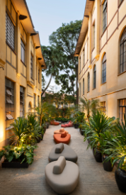 Entre dois prédios históricos do Museu Geológico do Parque Água Branca, onde as estruturas carregam memórias e o tempo desenha suas marcas, nasce um espaço que busca trazer mais valor ao simples ato de viver o presente. É o Jardim da Alameda, projeto de paisagismo assinado por Catê Poli e João Jadão para a CASACOR São Paulo 2025. Um convite para desacelerar, ouvir a cidade com menos urgência e apreciar. Entre dois prédios que tem as fachadas tombadas pelo patrimônio histórico e, ao lado de um café e de um restaurante, a proposta de formar uma travessia silenciosa e um lugar de passagem que se transforma em permanência, é explicada ainda no nome: Jardim da Alameda. O termo "Alameda", que significa rua arborizada, vem de "Álamo", árvore que é geralmente plantada alinhada lado a lado formando caminhos. Sem obras, o jardim elaborado pelos veteranos Catê e João, que celebram mais uma participação na CASACOR São Paulo, a sexta vez juntos, respeita o espaço tombado onde se insere, como quem chega devagar. O discurso quase centenário contrasta com a modernidade do novo jardim ao mesmo tempo em que se integra com a vegetação tropical de grande porte do Parque da Água Branca. Sobre o piso de pedra existente, a história permanece e, sobre ela, está instalado o jardim que inspira viver o agora. "Encontramos no espaço histórico a permanência do tempo e o nosso jardim se molda como uma instalação efêmera diante do presente", explica a paisagista Catê. Instalado com a leveza que se completa com a cena do parque onde estão inúmeras espécies de plantas e árvores centenárias da Mata Atlântica, o Jardim da Alameda é desmontável, transportável e adaptável. Plantas, floreiras, vasos, luminárias e mobiliário serão 100% reaproveitados após o fim da mostra. "Seguimos as premissas de respeitar a estrutura do local e fomos muito felizes em termos próximos ao nosso projeto a cena tropical do acervo natural que já existe por lá", ressalta João Jadão. Na imersão que os profissionais realizaram a partir do tema da edição desse ano – Semear Sonhos –, ambos se aprofundaram no sonho de preservação, restauro e valorização dos espaços históricos com intervenções paisagísticas para uso da população. Um desejo de termos espaços públicos melhores e uma cidade mais verde para todos. "Pensamos em um jardim relativamente simples, com caráter de praça, sem muitos adornos, com poucos elementos, mas todos com sua força e imponência. Pode existir beleza na simplicidade e no respeito ao patrimônio histórico", concluem juntos. |