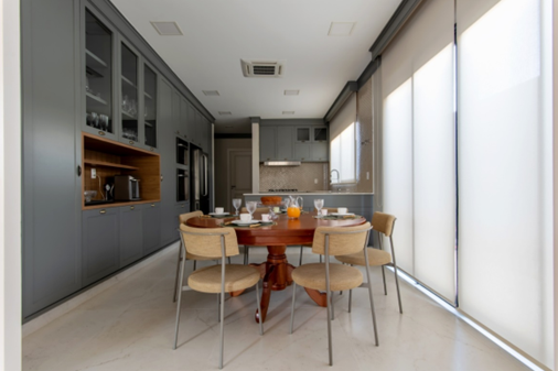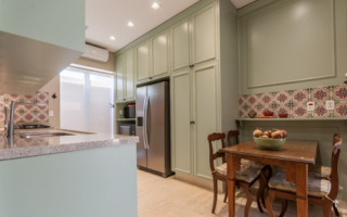 A marcenaria bem planejada é o ponto de partida para definir o espírito de uma cozinha. Seja minimalista, contemporânea ou clássica, as arquitetas Vanessa Paiva e Claudia Passarini, do escritório Paiva e Passarini Arquitetura, dizem que os materiais, acabamentos, tonalidades e a disposição escolhida traduzem a personalidade do projeto e impactam diretamente a vivência no ambiente. "Ela é uma estrutura vital no ambiente", afirma Claudia. Com foco na harmonia entre forma e uso, elas destacam que o estilo dita a narrativa do espaço e, entre as tendência em destaque, estão a valorização das madeiras orgânicas, o retorno de tons mais escuros, além de uma cartela realçando os gradientes de verde, azul e rosa-antigo – cores que garantem originalidade e sensação envolvente sem sobrecarregar o espaço. "Planejar uma cozinha vai muito além do layout. É sobre traduzir o ritmo de vida e os gostos dos clientes em soluções aplicáveis e visualmente instigantes", diz Vanessa. Funções e aplicações da marcenaria detalhada As profissionais enfatizam que o projeto atua como uma solução multifuncional que organiza, integra e, muitas vezes, disfarça elementos estruturais da cozinha. Com a marcenaria, é possível embutir eletrodomésticos – casos de cooktop, forno, geladeira, micro-ondas e lava-louças –, e proporcionar as áreas de armazenamento de acordo com as requisições do cliente. "Além do mais, conseguirmos embutir, com elegância, a estrutura de coifas e exaustores para garantirmos um estética limpa e contínua", continuam. Acompanhe as inspirações de cozinhas realizadas por Vanessa Paiva e Claudia Passarini: Cozinha de fazenda Em mais uma referência ao provençal, nesta cozinha com ares de fazenda, o verde menta colore os amplos armários e as gavetas. Seguindo essa linha nostálgica, o revestimento cerâmico compõe as faixas complementares na parede, como o caso do backsplash. |