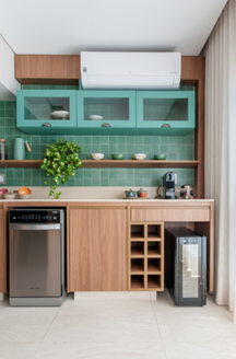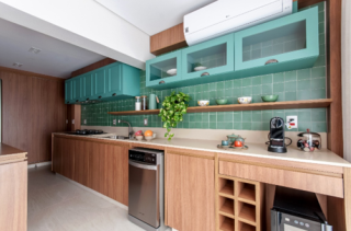 Com um visual que nunca passa despercebido, esta cozinha reformada por Vanessa Paiva e Claudia Passarini exalta a sintonia entre o clássico dos armários verde com a perspectiva contemporânea do layout e os recursos oferecidos para o dia a dia do casal | Fotos: Xavier Neto |