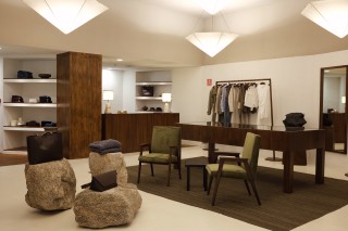Além das geometrias que ficam evidentes em diversos objetos, cada espaço e elemento foram pensados para transmitir a sofisticação da Mondepars. A aplicação de cortinas em diferentes ambientes, desde a vitrine até os provadores, o jogo de luzes e o uso de materiais naturais, como pedra e madeira, tornam a flagship mais do que apenas uma loja, mas uma verdadeira nova casa para a Mondepars.