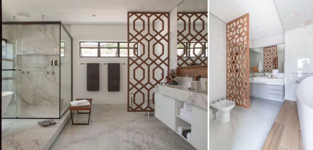 A 'segregação' graciosa entre espaços não precisa alcançar o pé-direito do ambiente: entre 1,80 e 2,20 m já representa uma altura suficiente para cumprir a ideia de conceder privacidade a um espaço.