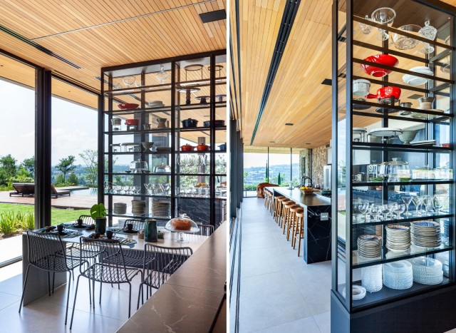 Na ampla varanda desta casa em Itu, a cristaleira em serralheria e vidro foi a estratégia da arquiteta Cristiane Schiavoni para distinguir o espaço da churrasqueira e a cozinha da área gourmet | Fotos: Carlos Piratininga