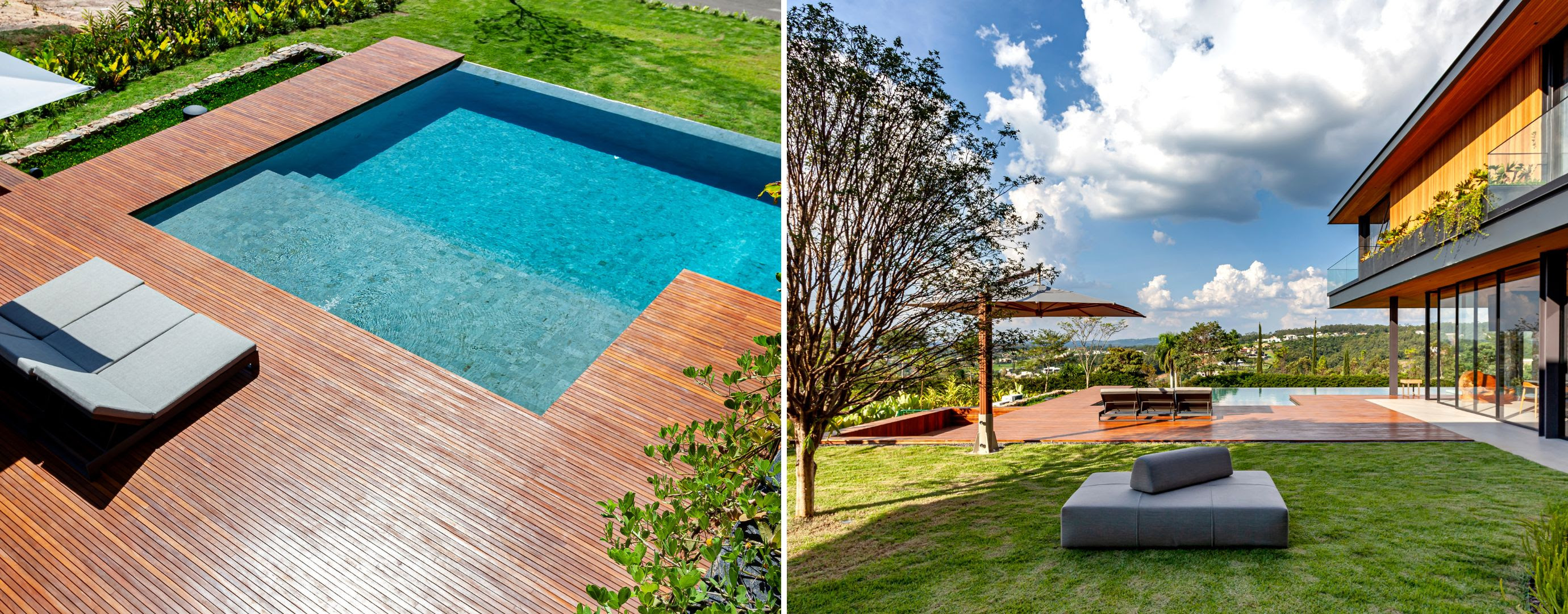Piscina aquecida com borda infinita, deck em madeira e mobiliário resistente às intempéries transformam a área externa em um refúgio confortável e integrado à paisagem. "Um pedacinho do paraíso", sintetiza a arquiteta Cristiane Schiavoni | Fotos: Carlos Piratininga |