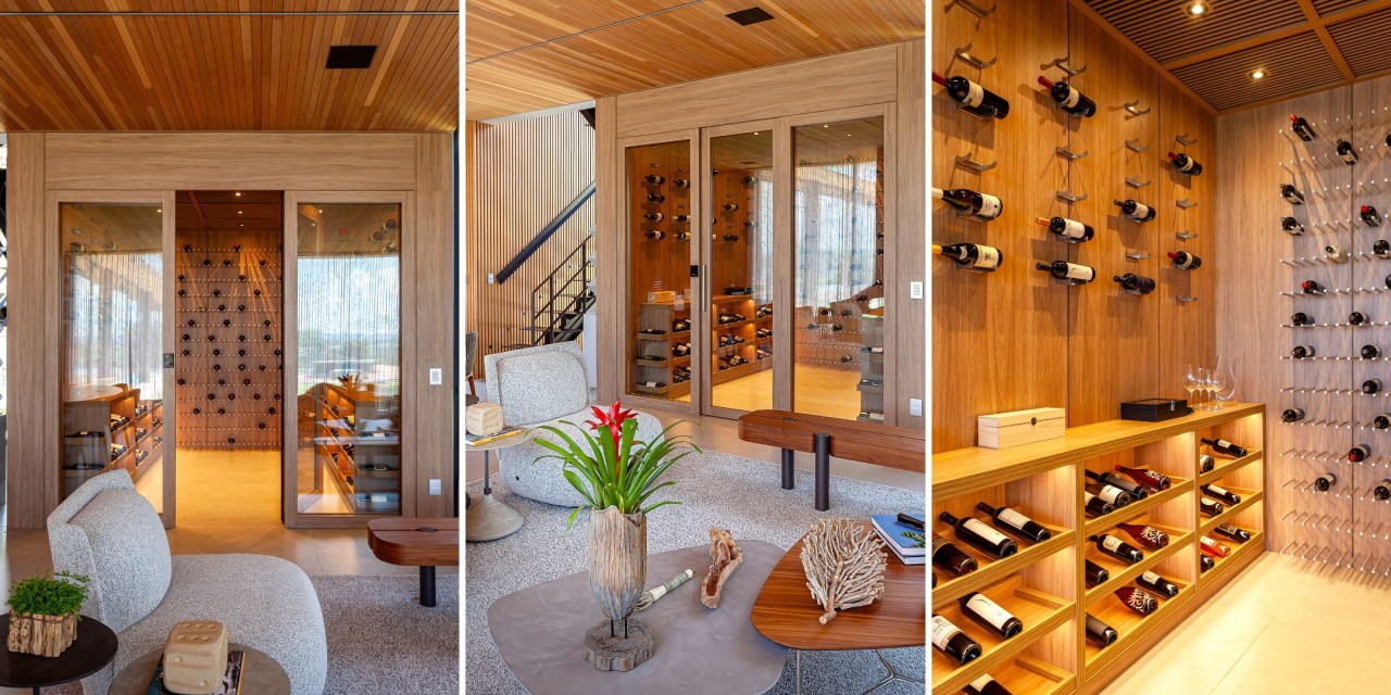 Realizada em parceria com a Art Des Caves, sob o comando da Cris, a adega recebeu tratamento específico para manter a temperatura e a umidade ideais. Seu interior foi desenhado para acomodar, diligentemente, diferentes tipos de garrafas e é vedada por uma porta em vidro especial, preenchida com gás, junto com a vedação hermética. |