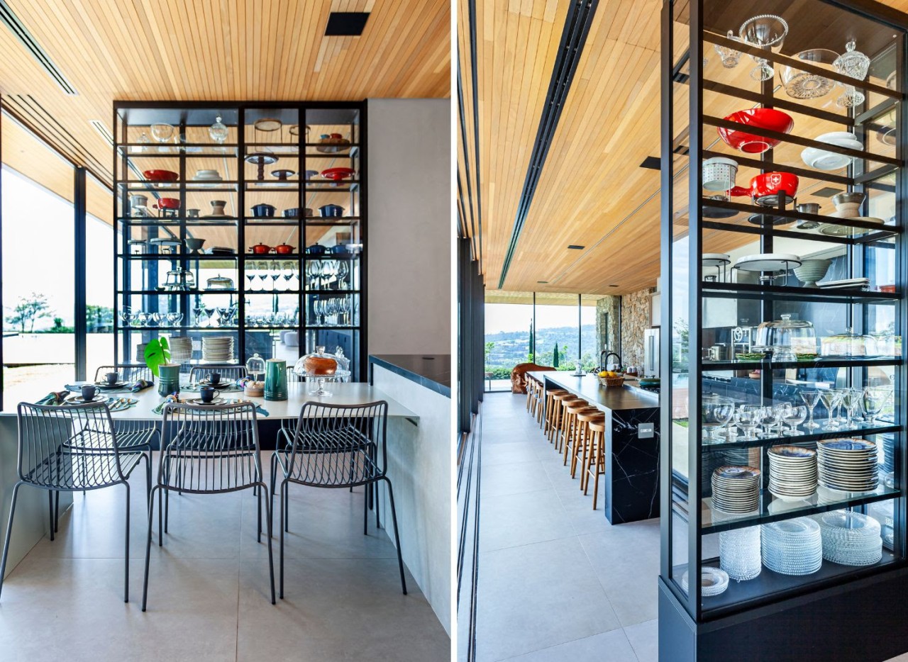 Com uma estrutura dos sonhos, a cozinha idealizada pela arquiteta Cristiane Schiavoni é composta por ilha central com cooktop, coifa embutida e uma cristaleira dupla face que se integra ao gourmet. Toda a elaboração entregou o conjunto perfeito para cozinhar e interagir com convidados | Foto: Carlos Piratininga |
