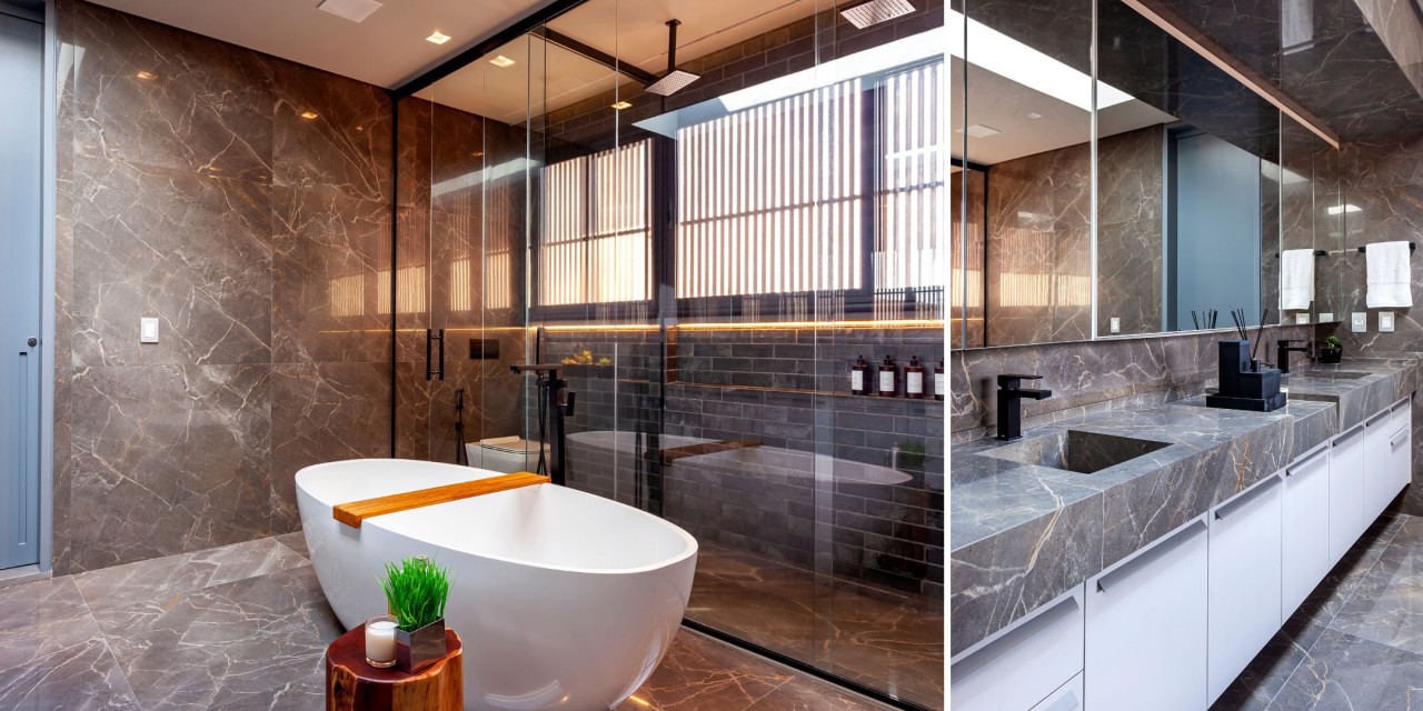 Tal qual uma sala de banho, a arquiteta Cristiane Schiavoni enfatizou o luxo de aproveitar a intimidade. Banheira freestanding e a duplicidade dos itens permite a individualidade, ao mesmo tempo em que o casal desfruta da companhia um do outro | Projeto de Interiores: Cristiane Schiavoni Arquitetura | Fotos: Carlos Piratininga |